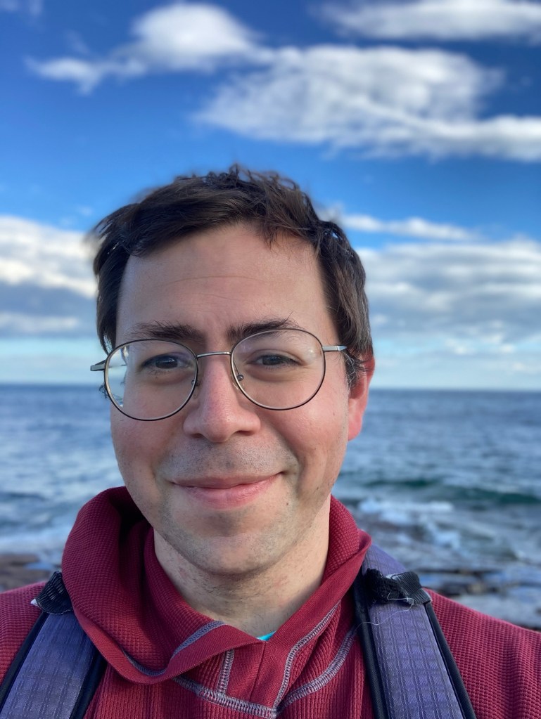 A picture of me with Lake Superior (Ojibwe: Gichigami) in the background
