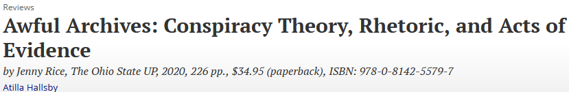 On October 26, I will deliver a “Rhetoric Unbound” lecture as part of a series developed by Dr. Joshua Trey Barnett of Pennsylvania State University. The talk, entitled “Twisted Endings: From the Secret Report to the Deep State,” will take place at 8.00 p.m. Eastern via Zoom. The lecture will last 30 minutes and will be followed…