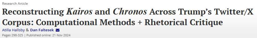 The collective force of ex-U.S. President Donald Trump’s tweets/Xs is palpable in American public culture, political discourse, and academic rhetorical criticism. Adopting a critical and computational approach, this essay offers a novel method for the rhetorical analysis of social media-based public address by shifting emphasis from memorable exemplars of Trump’s social media discourse to the flow dynamics among those tweets/Xs. Focused on loops of tweets as recursive argument systems, we use a Latent Dirichlet Allocation (LDA) Markov Chain analysis to offer insight into the kairotic and chronic patterning of Trump’s social media utterances to map more and less stable argument strategies across distinct periods of his first Twitter/X presidency.