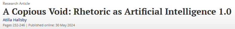 “A Copious Void” receives the 2025 Golden Anniversary Monograph Award from the National Communication Association. The article is about rhetoric and artificial intelligence as related technologies.