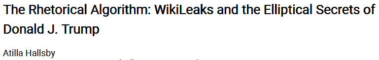 Algorithms were a generative force behind many of the leaks and secrets that dominated the 2016 election season. Taking the form of the identity-anonymizing Tor software that protected the identity of leakers, mathematical protocols occupied a prominent place in the secrets generated during the presidential campaign. This essay suggests that the rhetorical trope of ellipsis offers an equally crucial, algorithmic formula for explaining the public production of these secrets and leaks. It then describes the 2016 DNC leak and Donald Trump’s “I love Wikileaks” moment using the trope of ellipsis, which marks a discursive omission or gap in official executive discourse.
